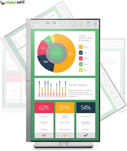 HP E223 از قابلیتهای ارگونومیک متنوعی برخوردار است که راحتی در استفاده طولانیمدت را افزایش میدهد. تنظیم ارتفاع، شیب و چرخش تصویر باعث میشود کاربران بتوانند زاویه مناسب برای خود را انتخاب کنند و از خستگی گردن یا چشمها جلوگیری شود. طراحی فریملس سهطرفه تجربه بصری گستردهتری ایجاد کرده و برای استفاده در تنظیمات چندنمایشی و محیطهای کاری حرفهای بسیار مناسب است. علاوه بر این، کیفیت ساخت بالا و بدنه محکم باعث میشود که این مانیتور حتی در استفاده طولانیمدت، عملکرد پایدار و مطمئن داشته باشد.